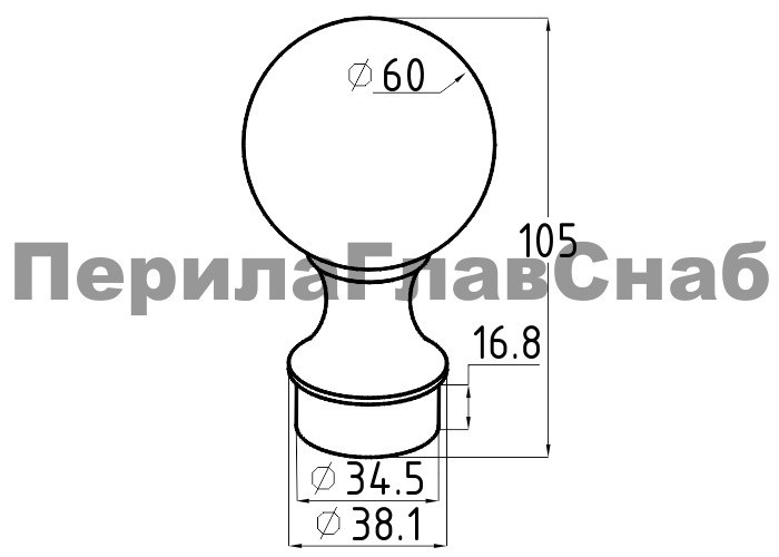 Наконечник шар на стойку Ø38.1 мм, литой, полированный, AISI 304 k070 купить в Самаре