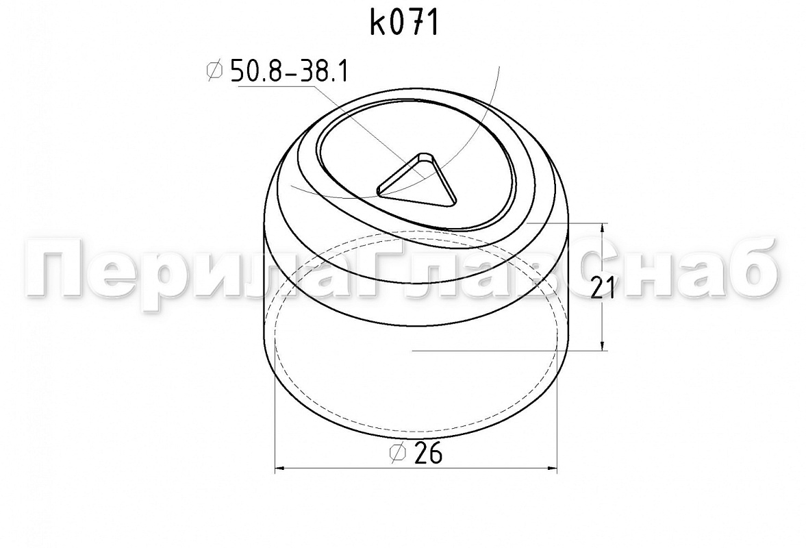 Наконечник штампованный (СПС) прямой 90° на трубу Ø25 мм, для поручня Ø38.1 мм, полированный, нержавеющий, AISI 304, k071