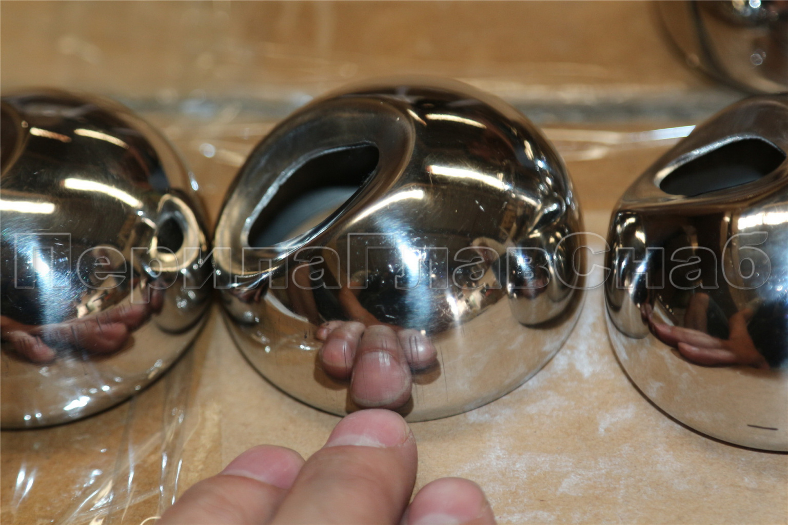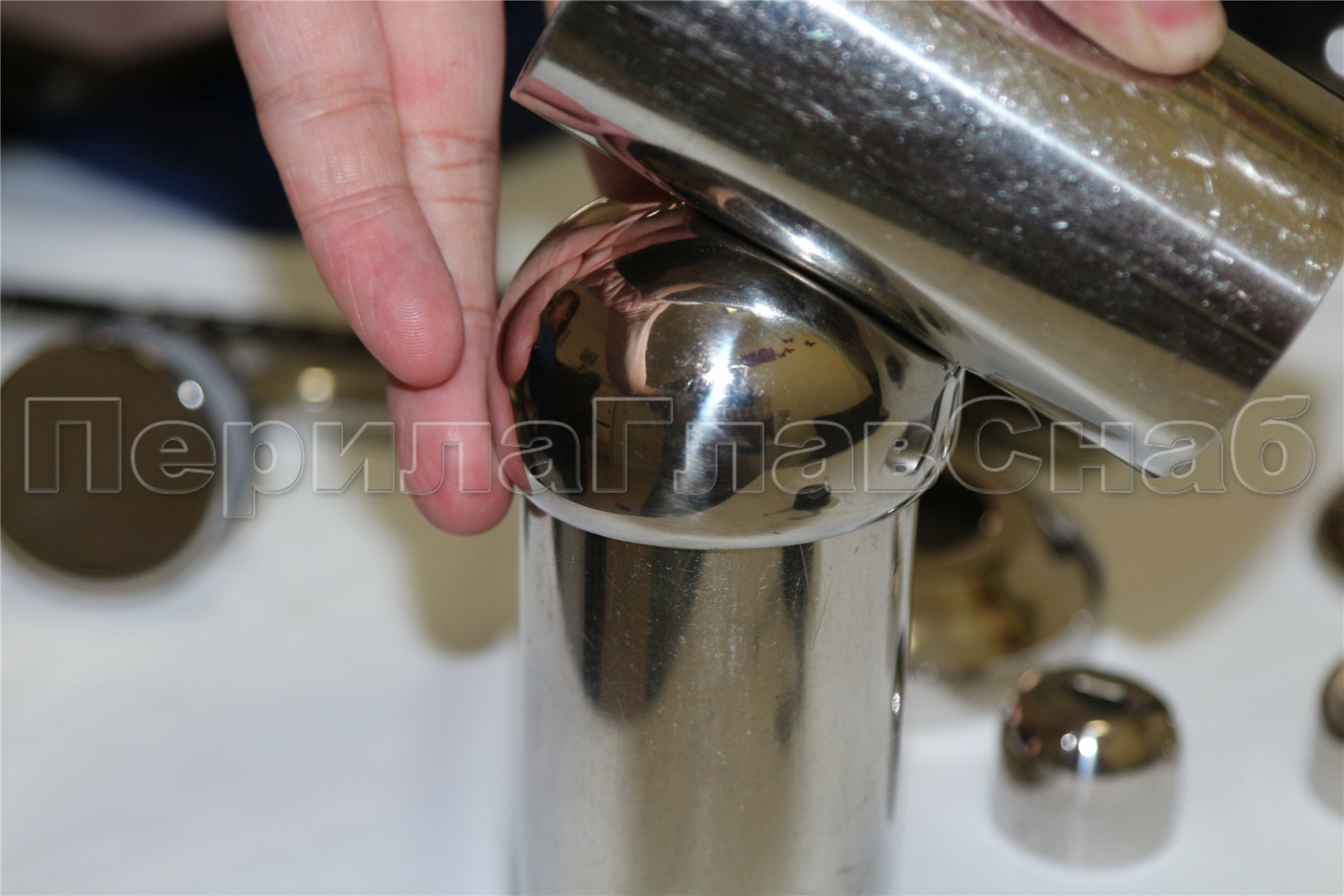 Наконечник штампованный (СПС) косой 30° на трубу Ø50.8 мм, для поручня Ø50.8 мм, полированный, нержавеющий, AISI 304, 600Grit, k073