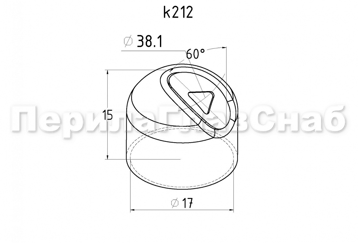 Наконечник штампованный (СПС) косой 30° на трубу Ø16 мм, для поручня Ø38.1 мм, полированный, нержавеющий, (AISI 201) k212-3