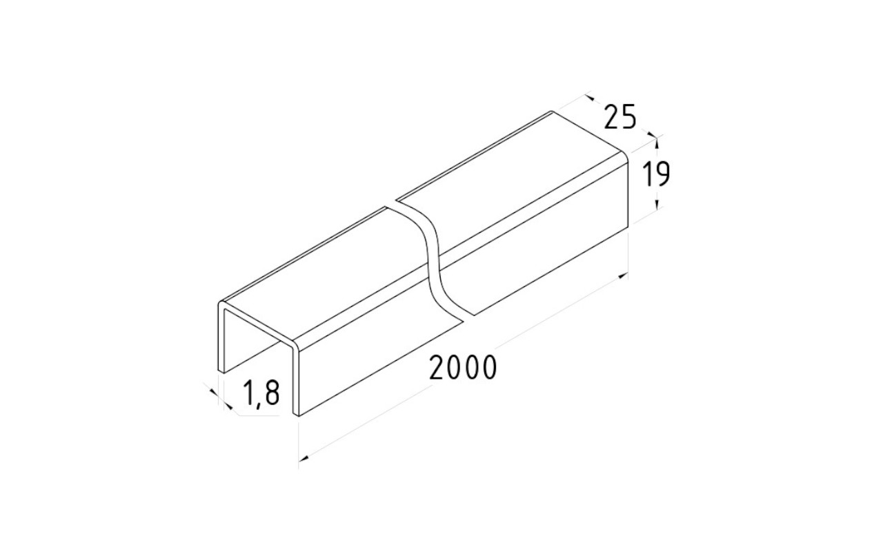 Профиль П-образный, L=2500 мм, t=1 мм, для стекла 8 мм, шлиф. (AISI 304)  t115 SSS купить в Самаре