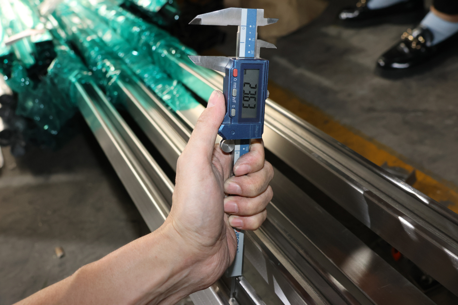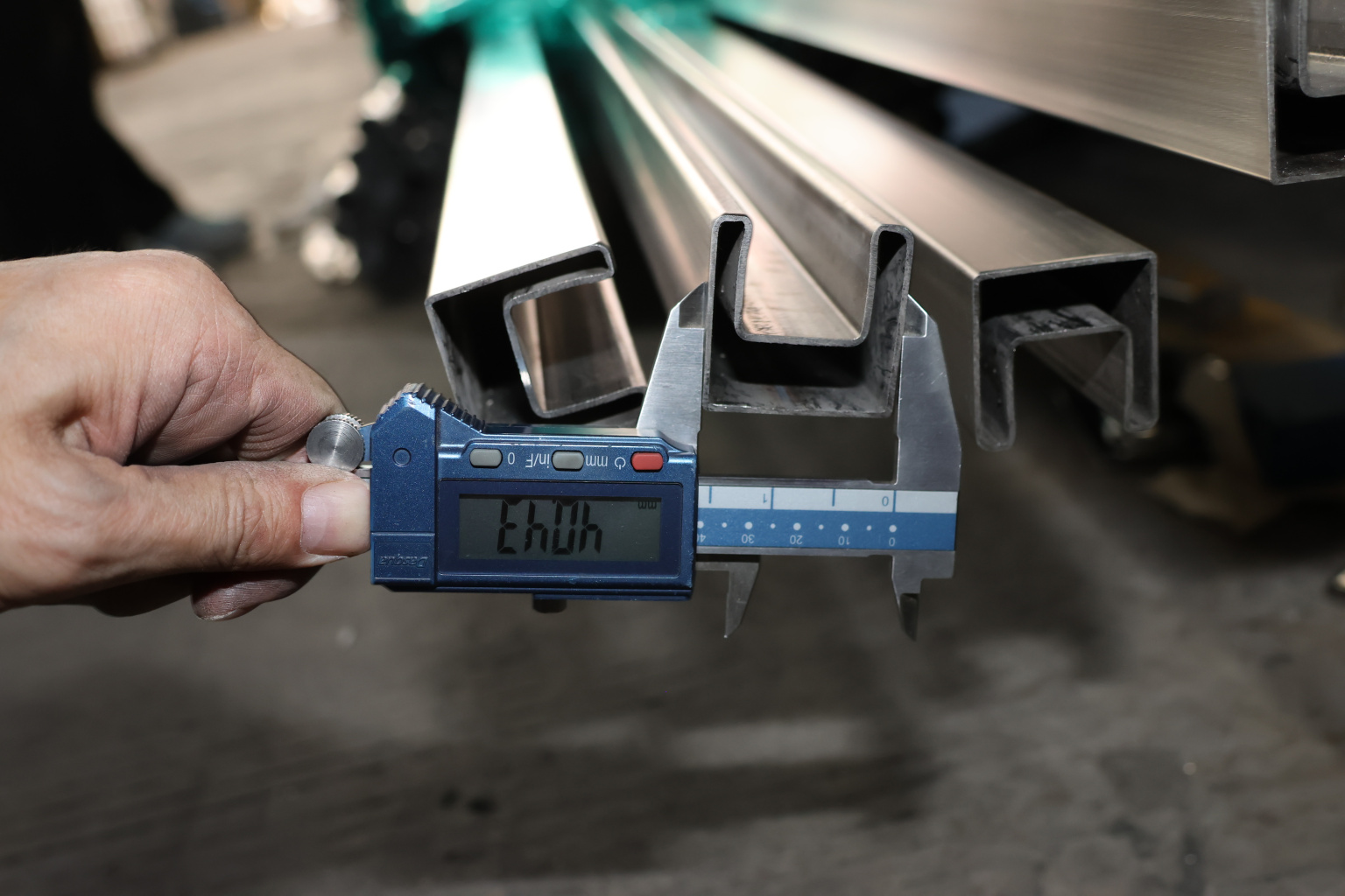 Труба 40х40 мм с пазом 24 х 24 под стекло, AISI 304 шлифованная k856-2