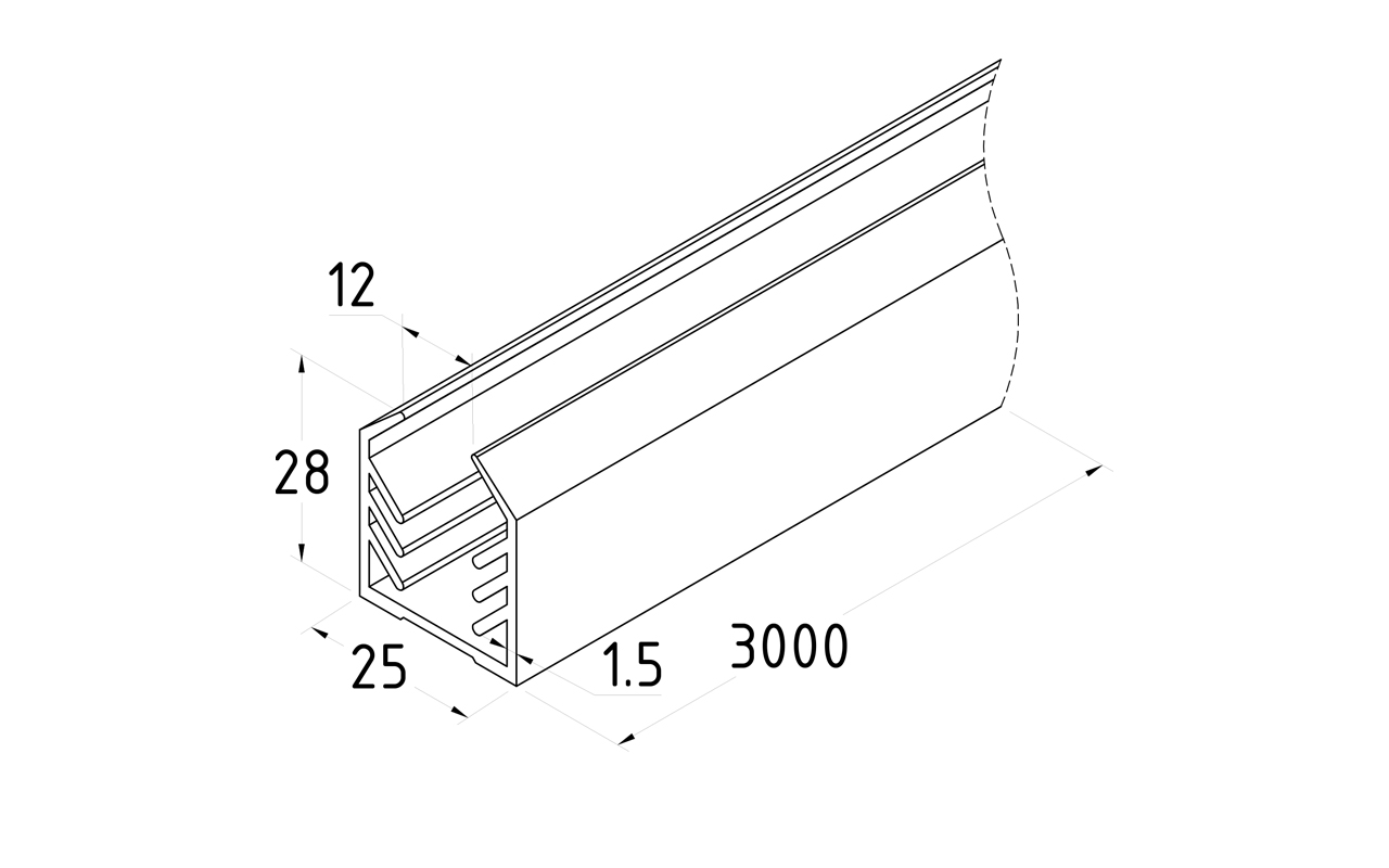 Уплотнитель в поручень с пазом 24х24 для стекла 12мм, EPDM (3-х метровый) СЕРЫЙ Фk301-G
