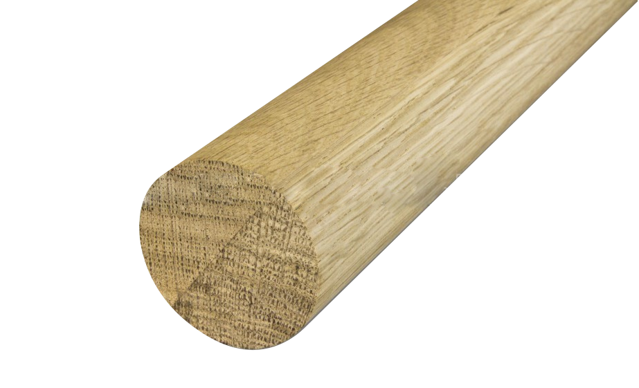 Хлыст из 2 ламелей дуба, с разнонаправленным расположением волокон для увеличения прочностных характеристик, длиной 2 метра и диаметром 49 (±1) мм, обработанный, шлифованный, под покраску. Без поперечных сращений* – можно использовать лазурь (полупрозрачную краску, подчеркивающую рисунок дерева).