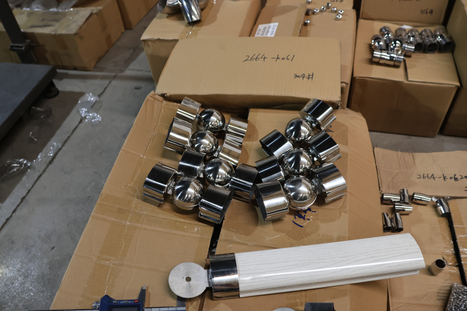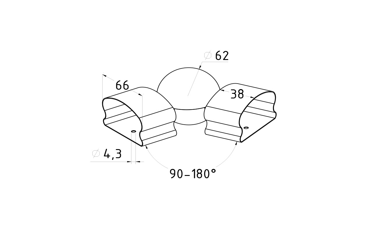 Поворот пластикового фигурного поручня, шаровый, полированный, AISI 304 k061