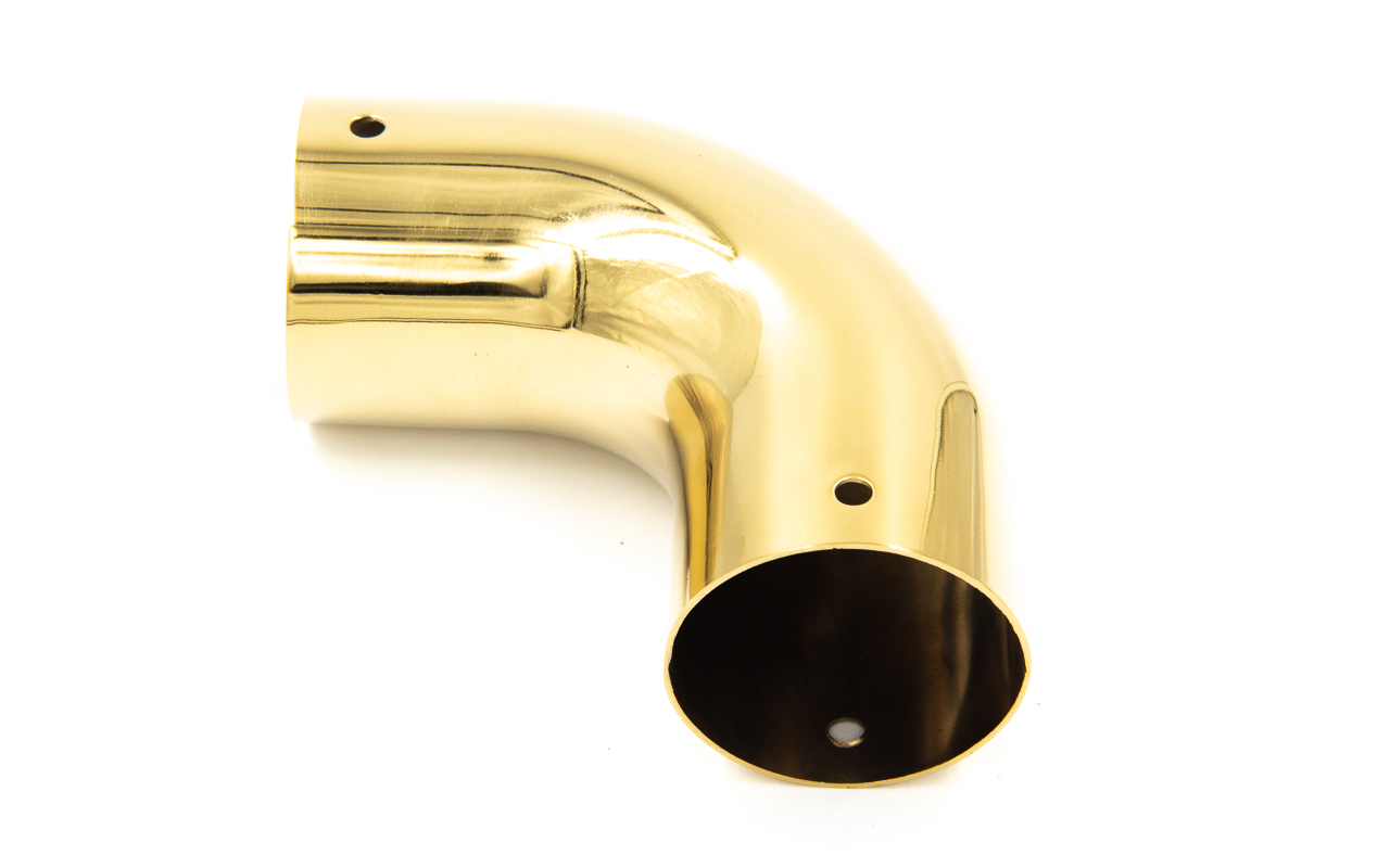 Отвод поручня под Ø50.8х102х1.45 мм, 90°, полированный 600 Grit, с двумя установочными кольцами, золото k052-88 купить в Самаре