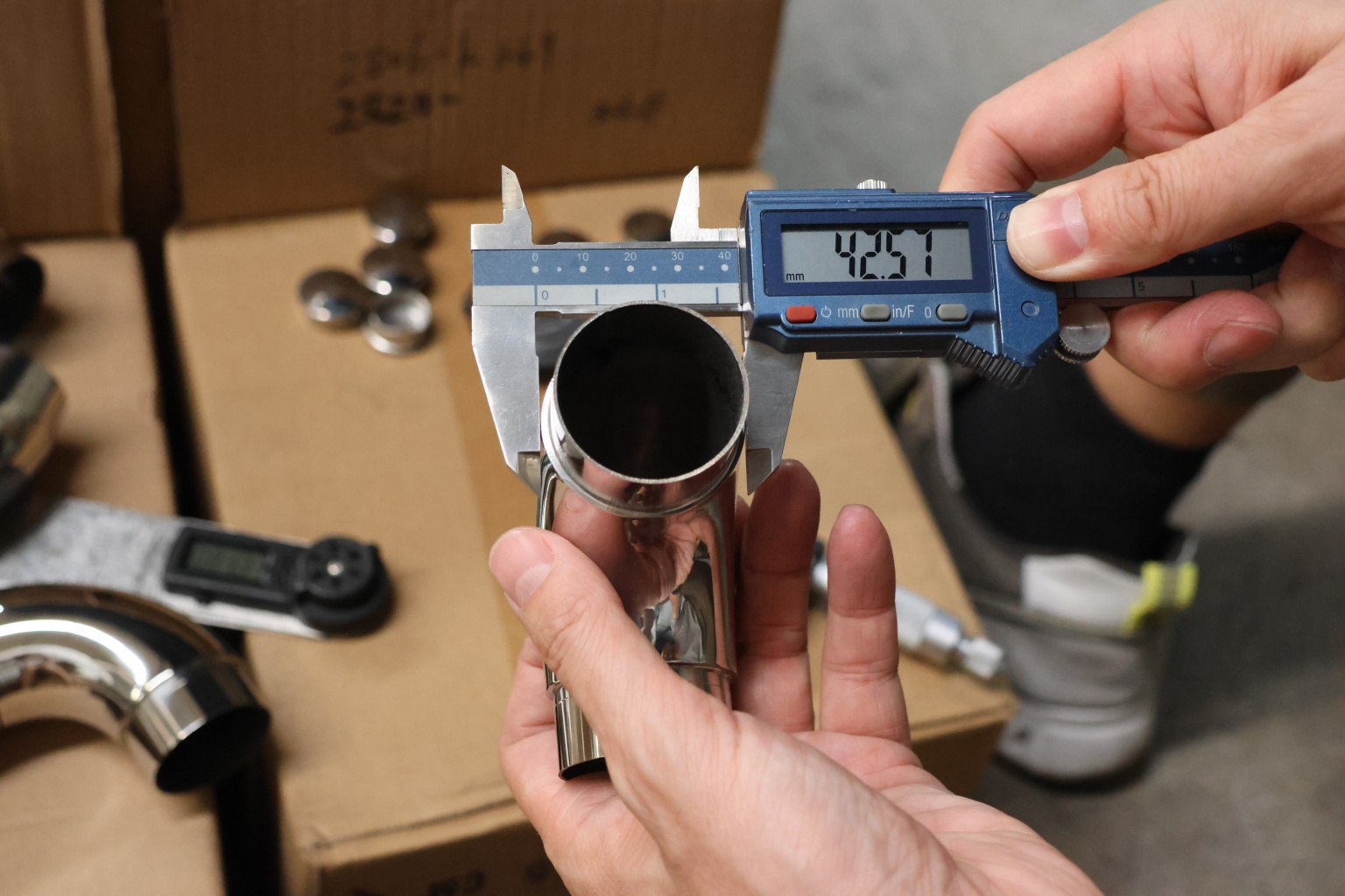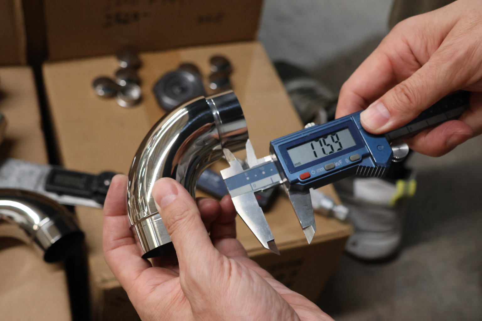 Отвод поручня под Ø42.4х1.5 мм, 90°, литой, полированный, с вставками (AISI 304)