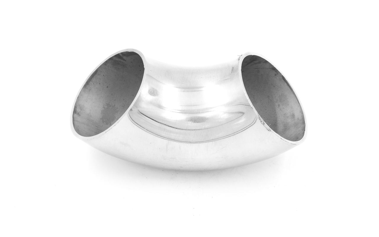 Отвод поручня диаметром 42.4 мм, 90°. Деталь полированная, сварная. Марка стали - AISI 201