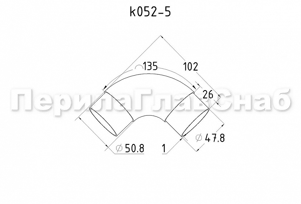 Отвод Ø50.8 мм, облегченный, полированный (AISI 201) k052-5