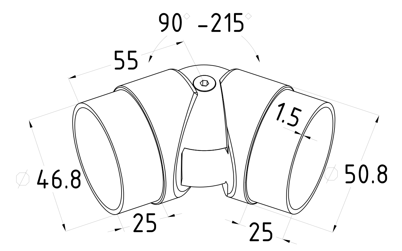 Применяется во время монтажа самосборных ограждений для установки поворота нержавеющих перил в диапазоне от 85 до 215 градусов.