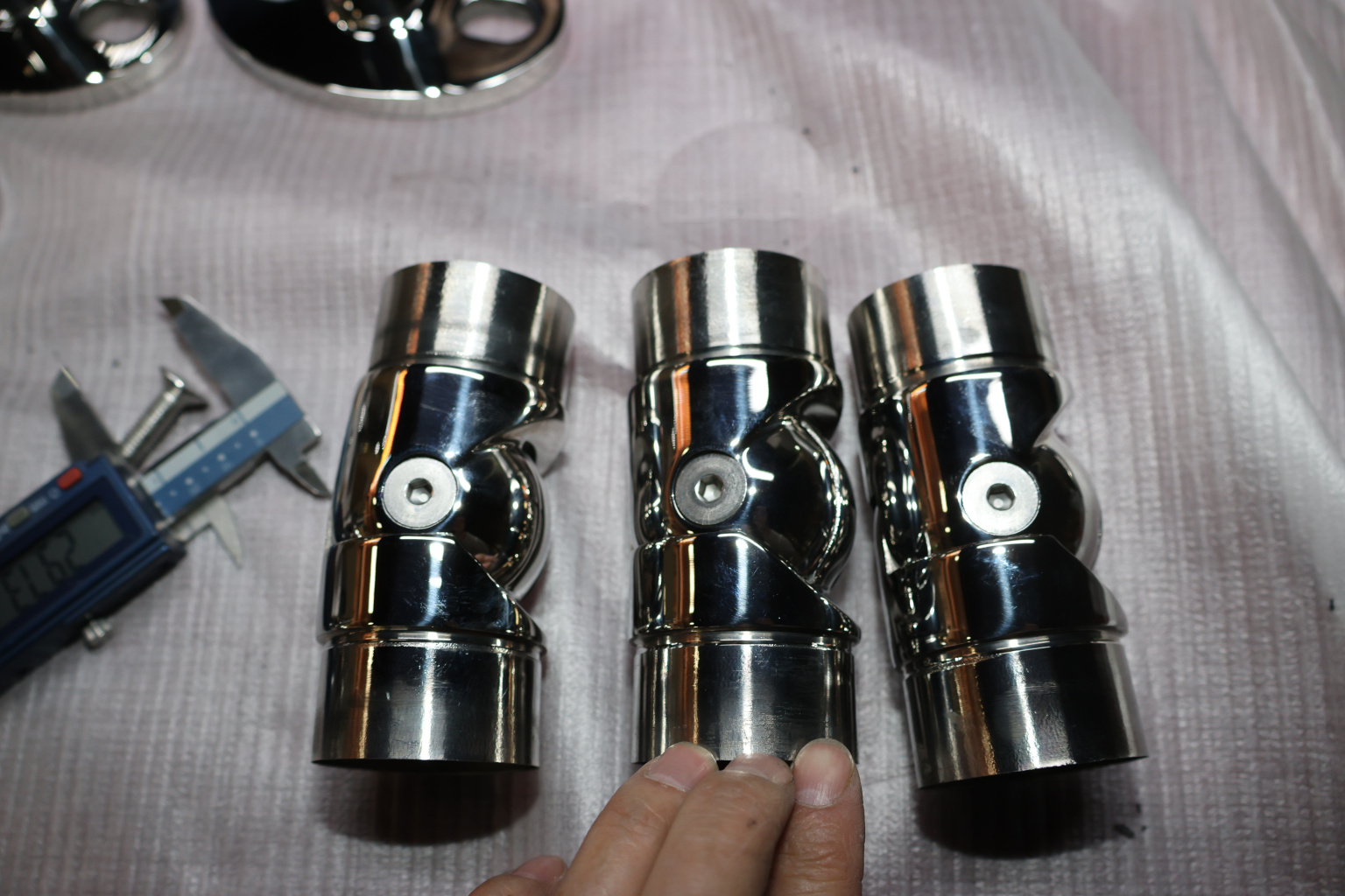 Поворот шарнирный для трубы диаметром 50.8. Деталь полированная, литая. Марка стали - AISI 304