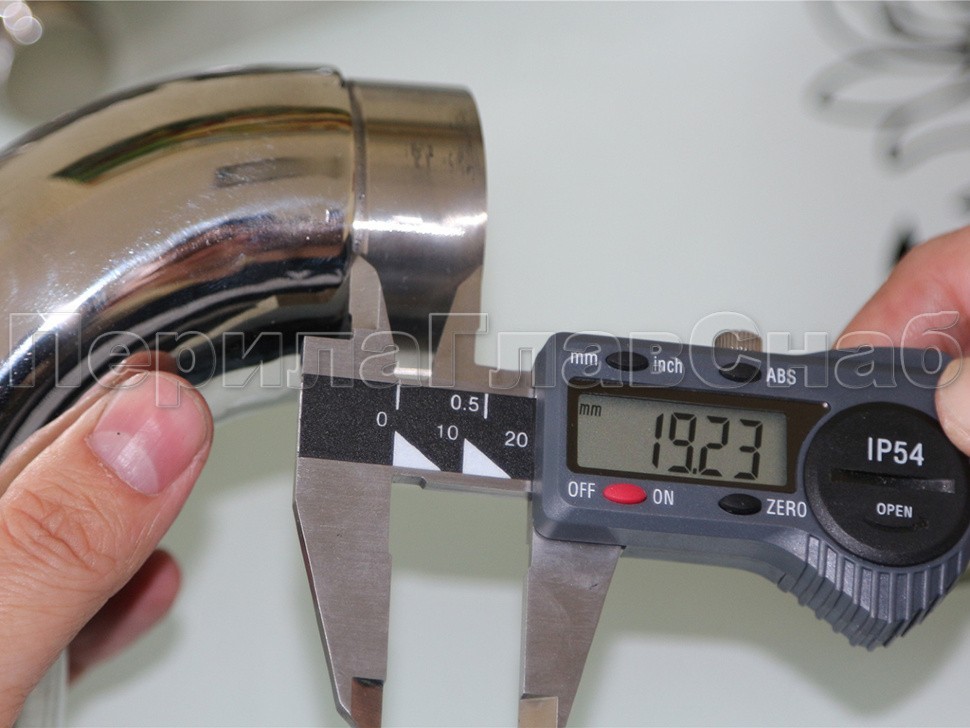 Как правило, в качестве поручня применяется труба из нержавеющей стали толщиной стенки 1.5 мм. Наша модель самосборного отвода сделана из высокопрочной стали со стенкой 1.45 мм с зазором для надежной установки на клей.