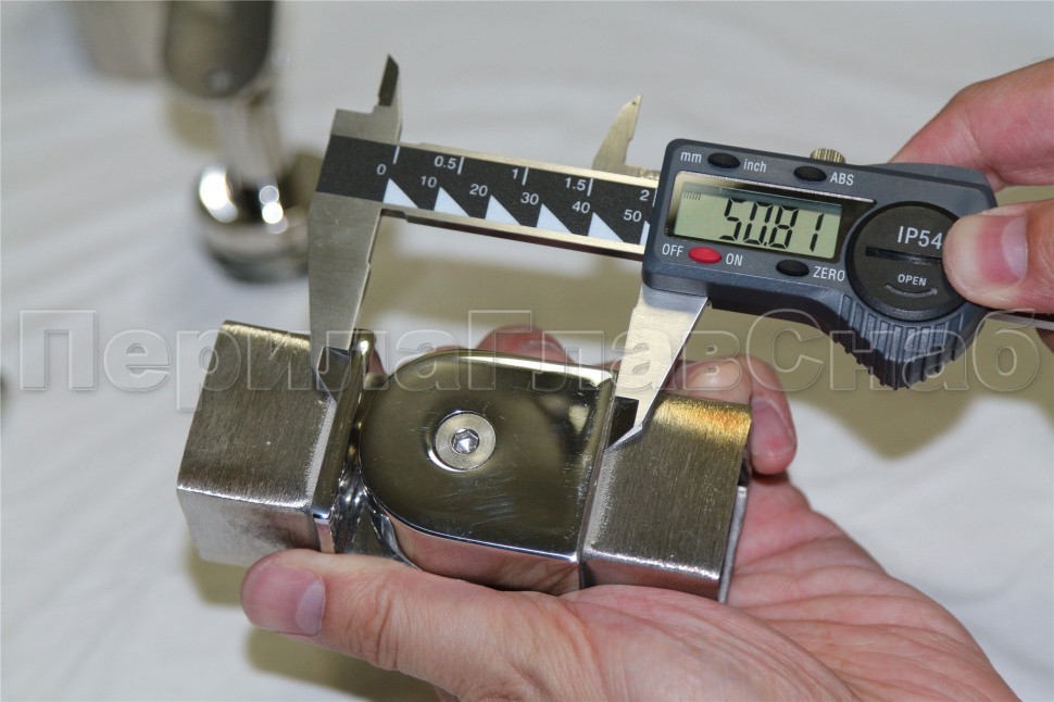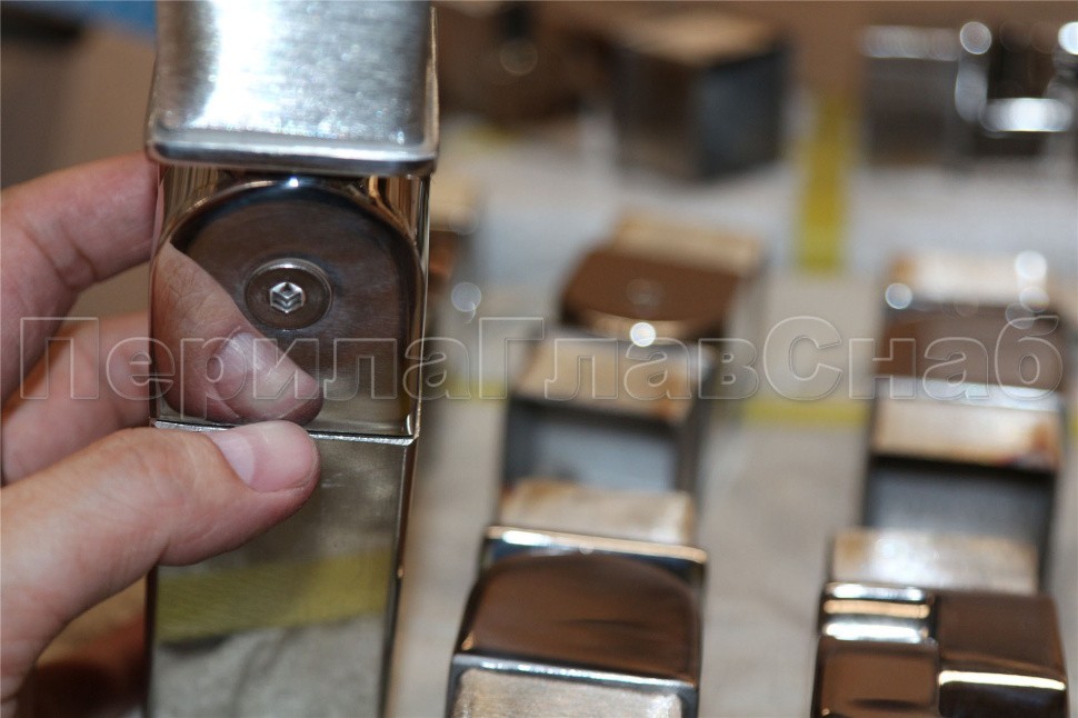 Наконечник на стойку из профильной трубы 40х40 мм, с регулируемым ложементом под плоскость, литой, полированный, нержавеющий AISI 304 k222-3 купить в Самаре