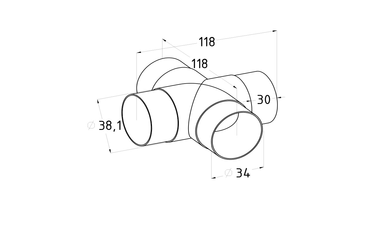 Соединение поручня Ø38.1 мм, крестовина (AISI 304)