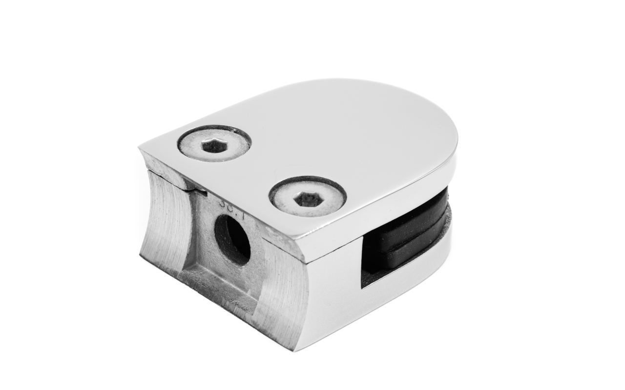 Стеклодержатель литой под стекло 8 мм (4+4 мм), под стойку Ø38.1 мм, (40х22х49), полированный AISI 316 k001-5