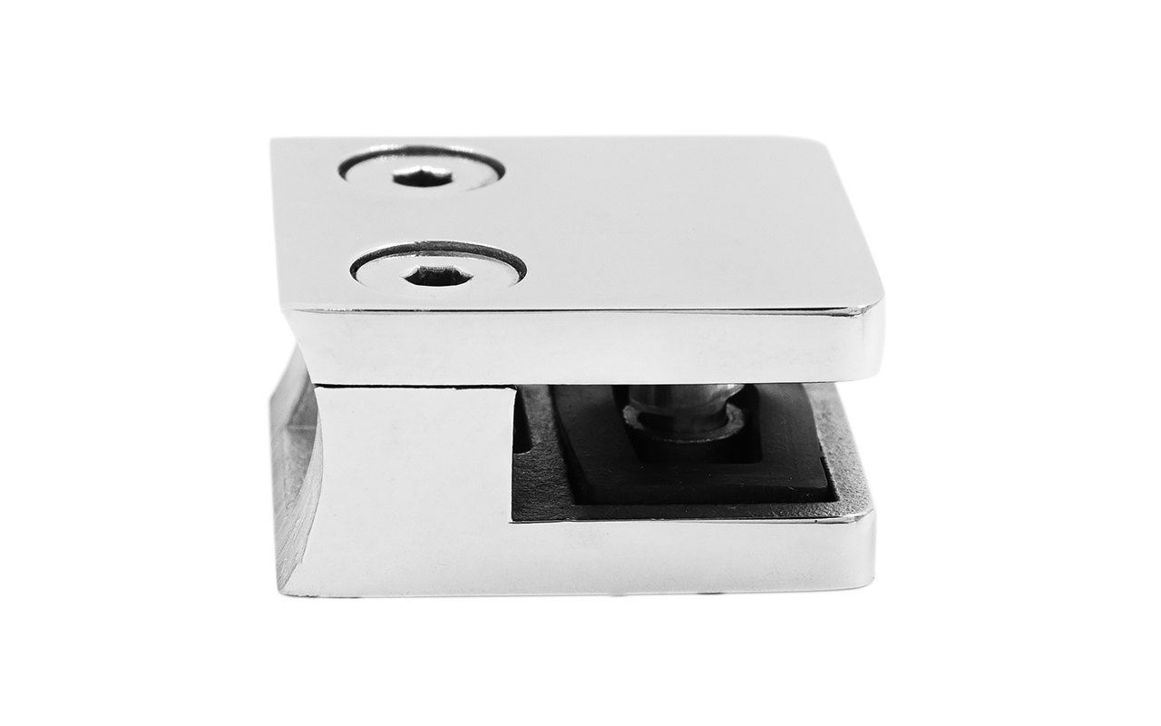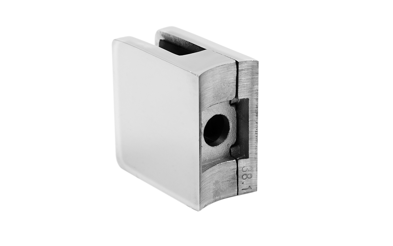 Стеклодержатель литой квадратный с вставками под стекло 8-10 мм (4+4 мм), на стойку Ø38.1 мм, 41х22х42, полированный, (AISI 304) k004-10