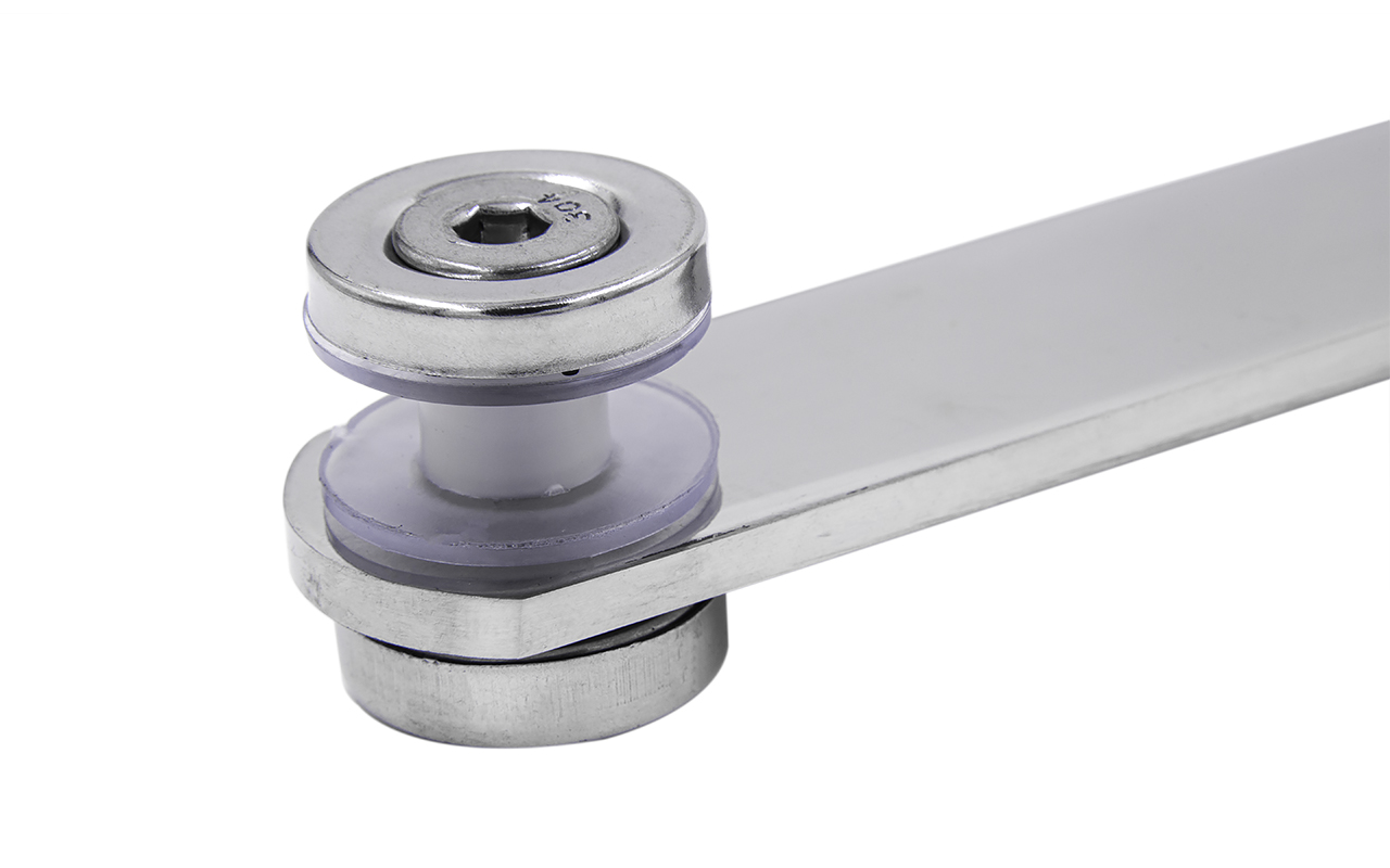 Пластиночный стеклодержатель с резьбой М8 — крепёжный элемент для фиксации стёкол толщиной от 6 до 12 мм.