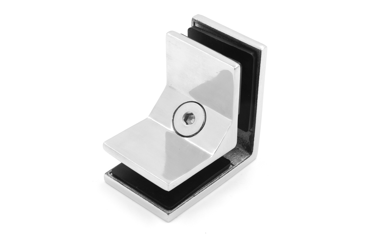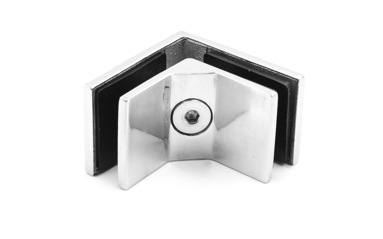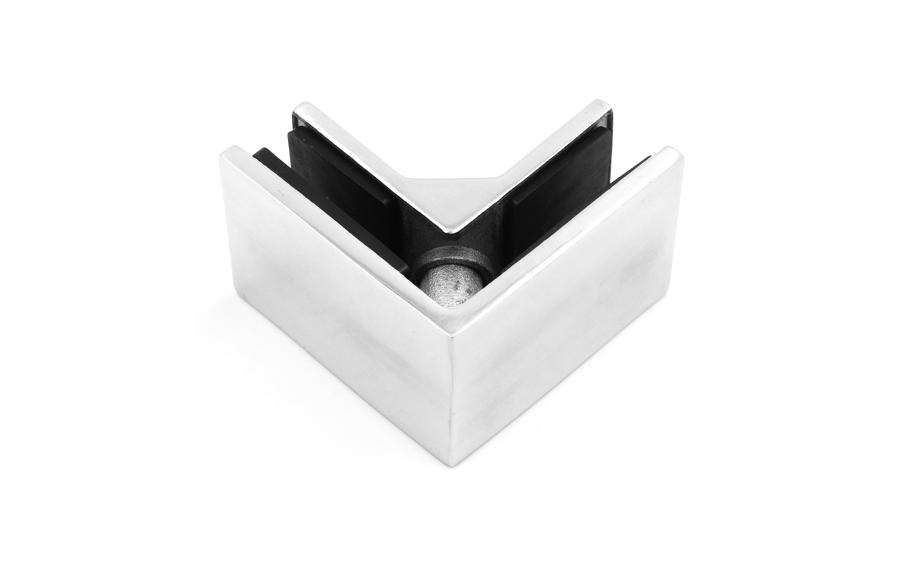 Соединитель стекол угловой, полированный, марка стали- AISI304, под стекло 8, 10, 12 мм