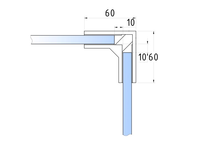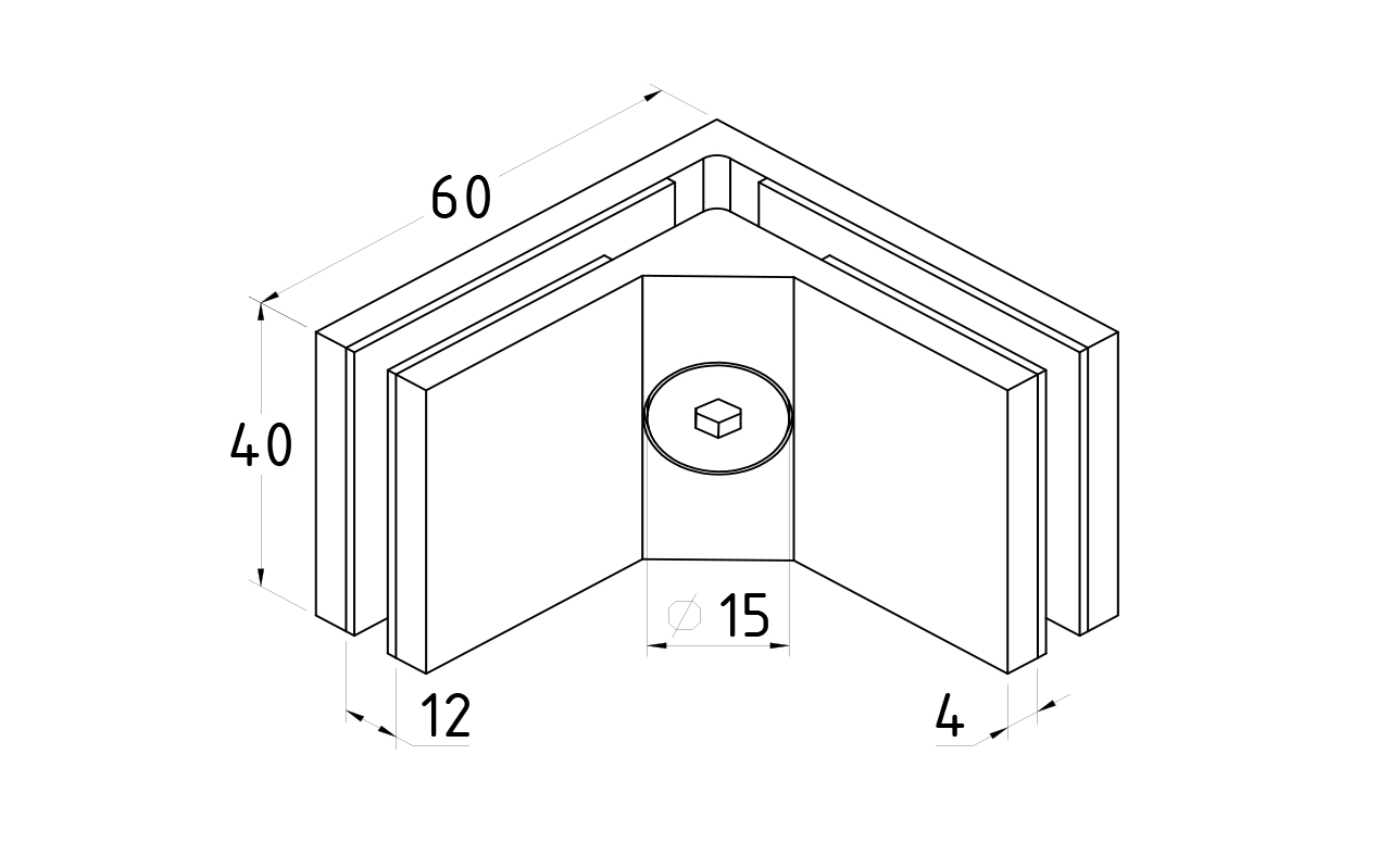 Соединитель стекол, угловой, 60х40, нержавеющая сталь AISI 304, полированная k117