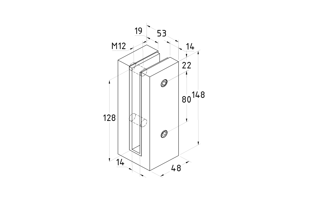 Предназначен для установки стеклянного ограждения с помощью крепления в торец марша, террасы или балкона.