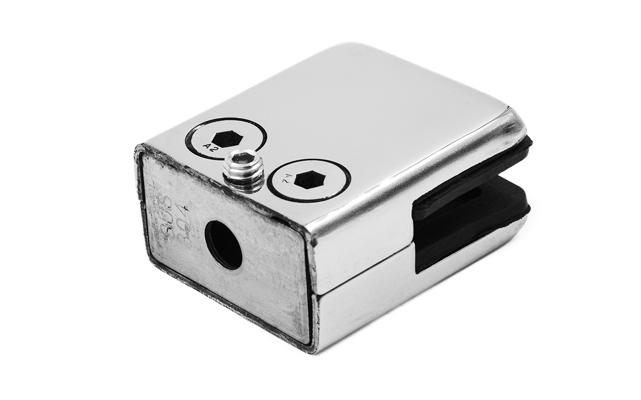 Спроектирован и разработан для быстрого монтажа ограждений со стеклом толщиной 8 мм на плоскую поверхность. Производится со специальным установочным отверстием и утолщенными краями, что позволяет монтировать его на самосборных ограждениях и на сварку.
