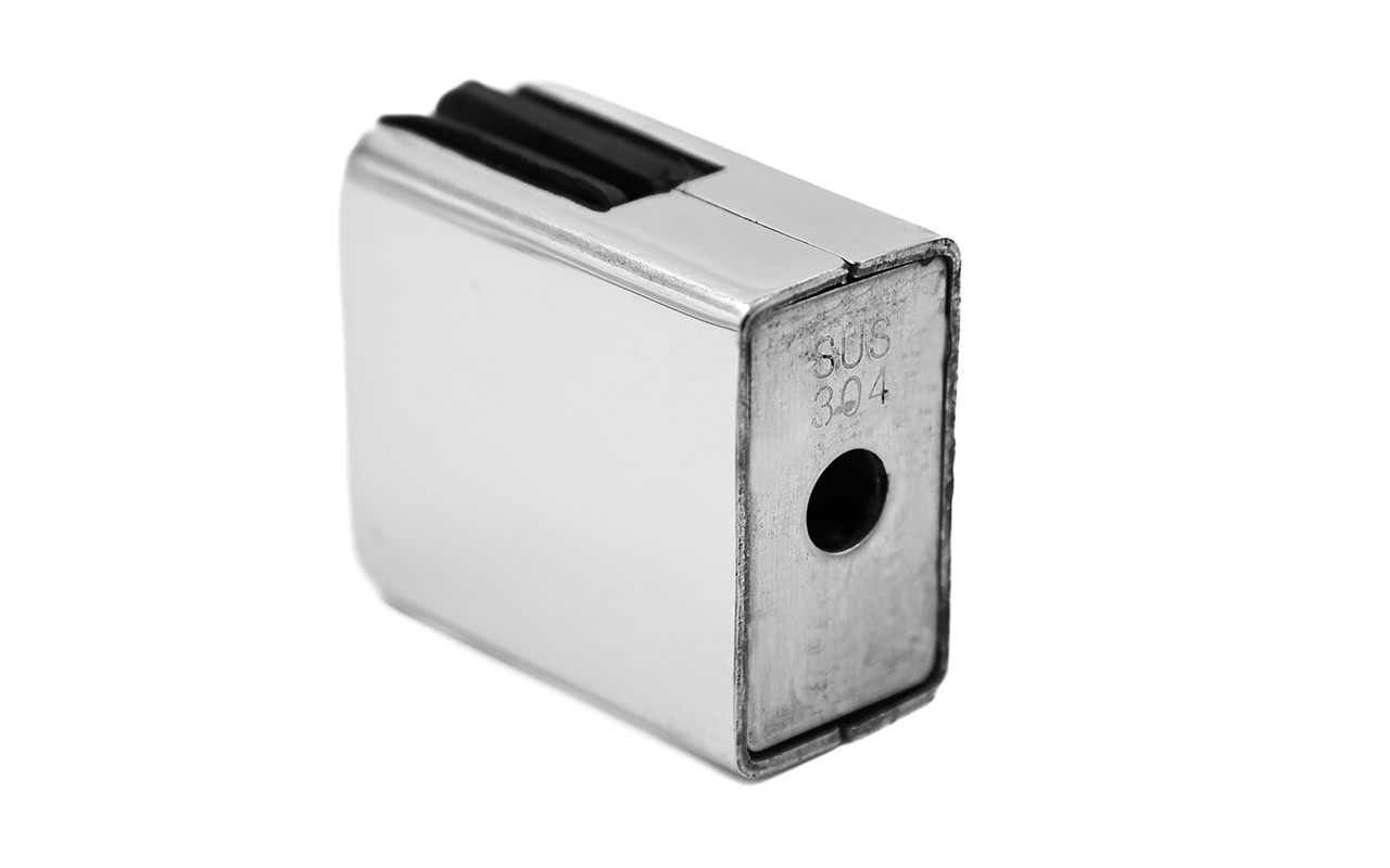 Стеклодержатель штампованный, под стекло 8 мм (4+4 мм), на плоскость 40х24х48 полированный (AISI 304) k352