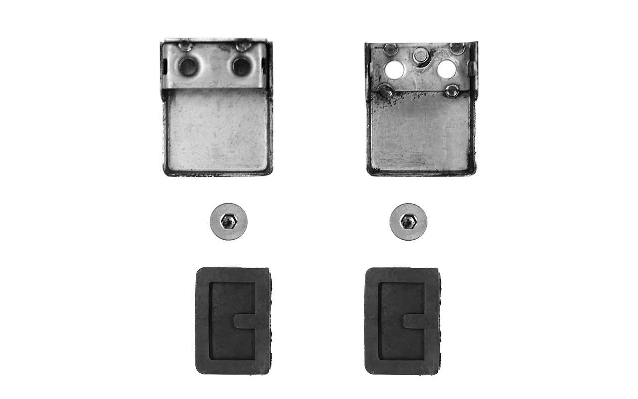 2. Либо вваривают шпильку с резьбой М6 и закрепляют первую половину стеклодержателя на стойке, стягивая гайкой. Вторая часть стеклодержателя присоединяется к первой входящими в комплект специальными винтами под шестигранный ключ. В этот момент стекло зажимается между двумя половинками детали специальными высокотехнологичными уплотнителями из EPDM.