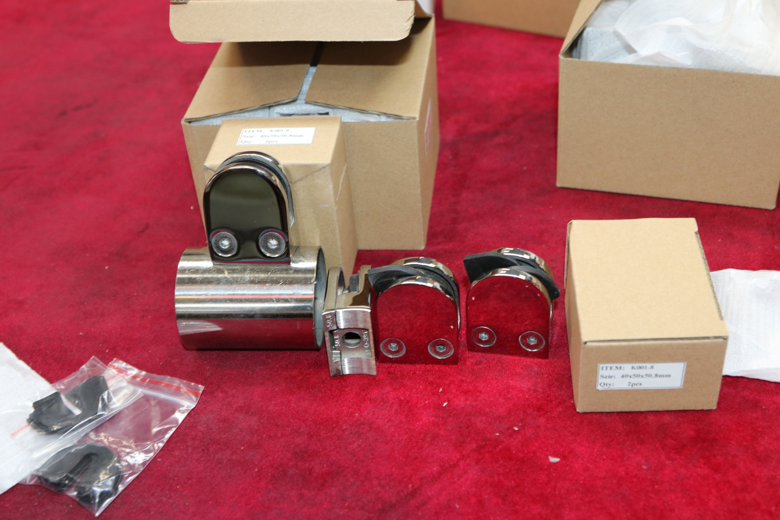 Стеклодержатель литой с вставками под стекло 8-10 мм, закругленный под Ø50.8 мм, 40х22х50, полированный. Марка стали - AISI 304