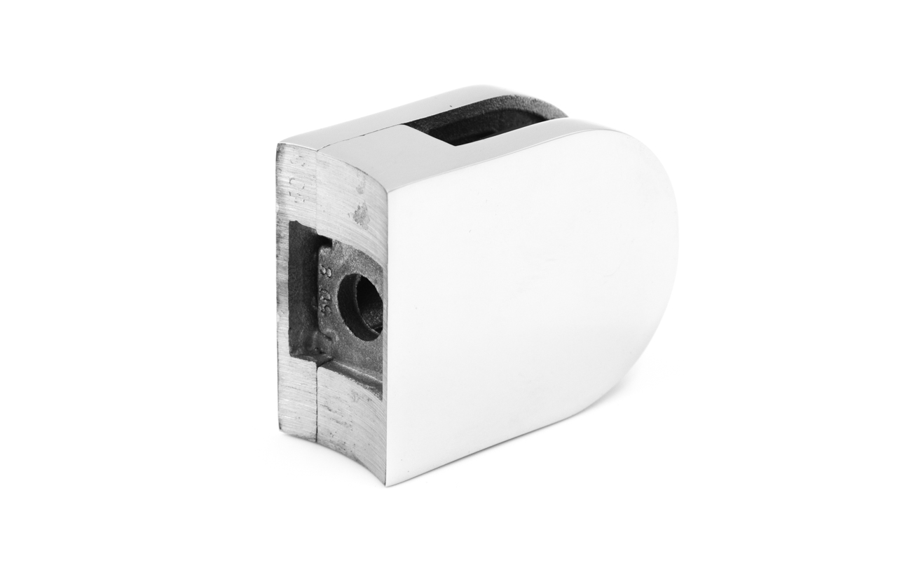 Стеклодержатель литой с вставками под стекло 8-10 мм, закругленный под Ø50.8 мм, 40х22х50, полированный, (AISI 304) k001-8
