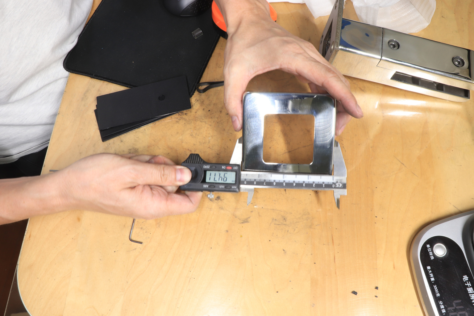 Стеклодержатель штампованный под стекло 8 мм (4+4 мм), квадратный, под стойку Ø38.1 мм (40х24х48), полированный (AISI 304) k351