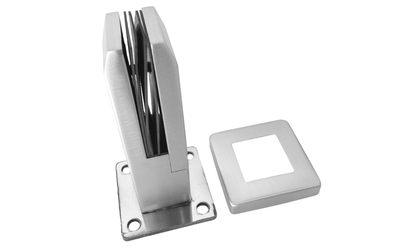 Стеклодержатель штампованный  под стекло 8 мм (4+4 мм), квадратный, под стойку Ø38.1 мм (40х24х48), полированный (AISI 304) k351 купить в Самаре