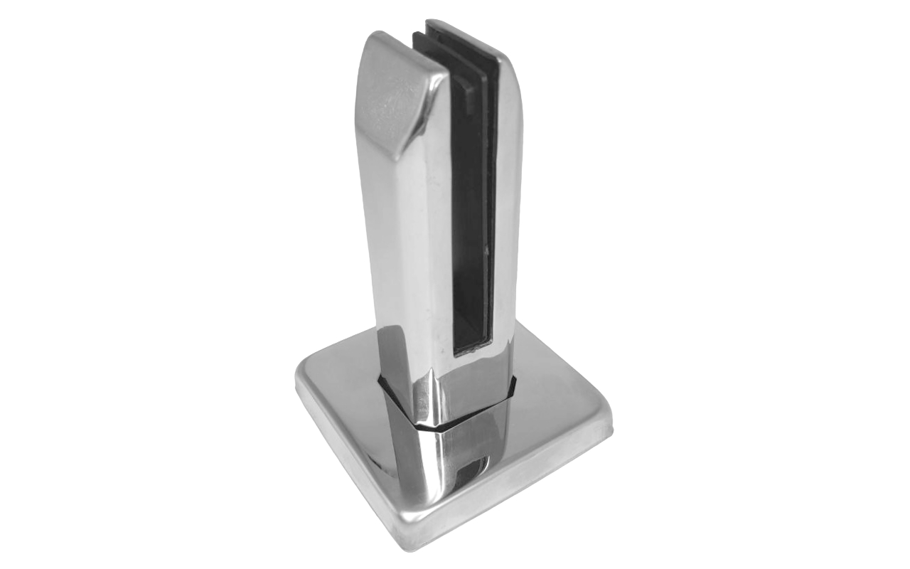 Стеклодержатель штампованный  под стекло 8 мм (4+4 мм), квадратный, под стойку Ø38.1 мм (40х24х48), полированный (AISI 304) k351 купить в Самаре