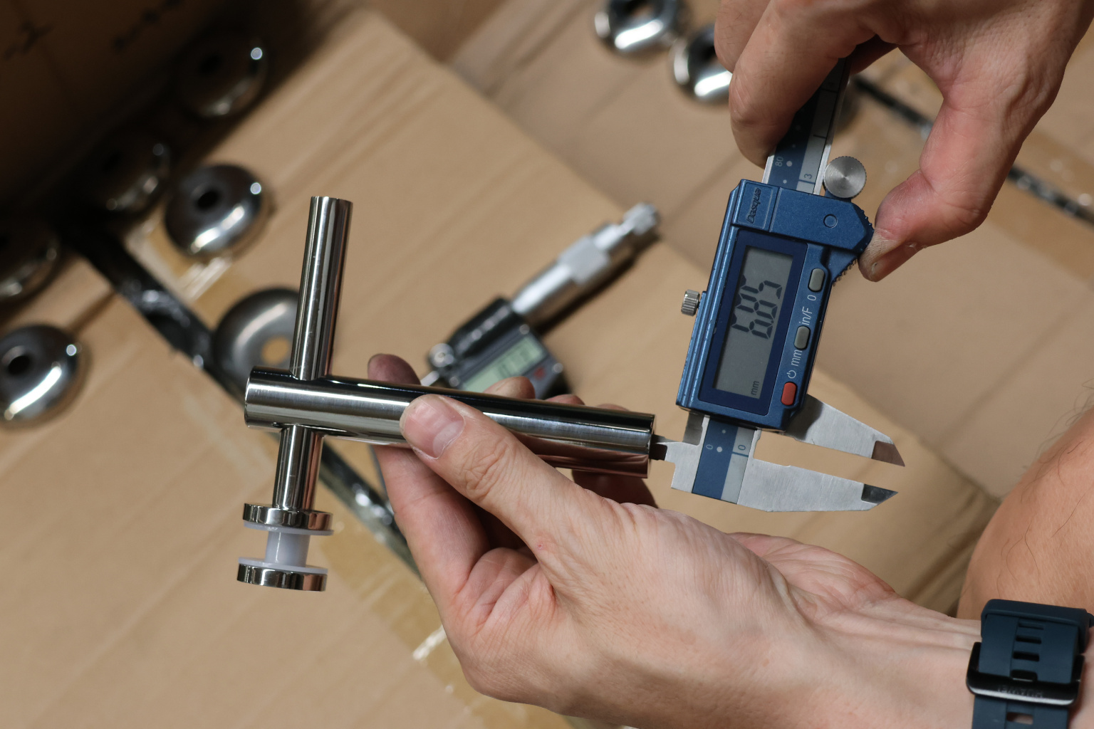 Наконечник палец на стойку Ø50.8х1.5 мм с регулируемым ложементом под поручень Ø50.8 мм, литой, полированный, нержавеющий AISI 304 k042 купить в Самаре
