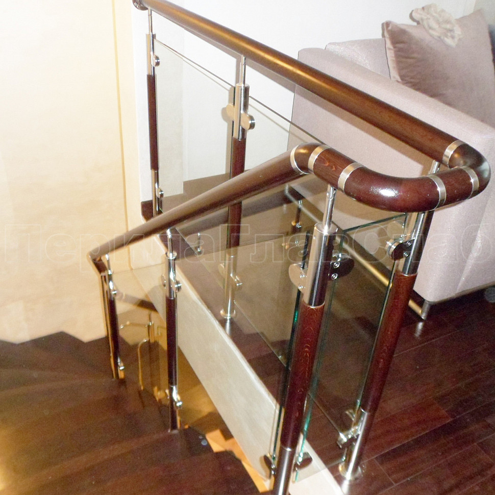 Стойка с деревянными вставками подойдет под любой дизайн благодаря тому, что Вы можете покрасить деревянную вставку в любой необходимый вам цвет. В стойке используется дубовая вставка и нержавеющая сталь AISI 304. Все элементы из нержавеющей стали приварены, заполированы и обработаны на нашем производстве. Благодаря регулируемому наконечнику стойки можно использовать как на лестничном марше, так и на прямом участке. К базовой стойке k741 прикручены 4 зажимных стеклодержателя.