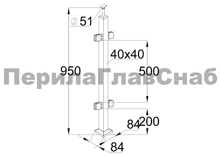 Стойка квадратная 40х40: 4 литых стеклодержателя, шлифованная, высота 950 мм AISI 304 k746-7 купить в Самаре