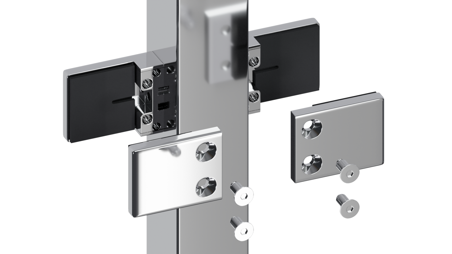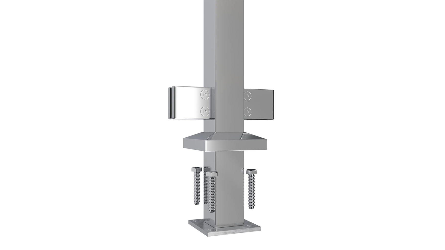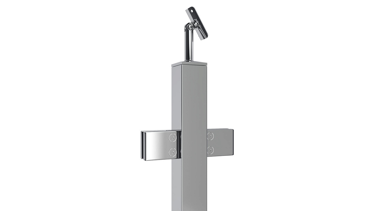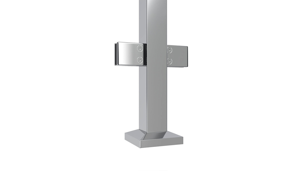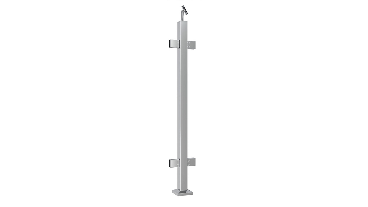 Стойка квадратная 40х40: 4 литых квадратных стеклодержателя, шлифованная, высота 950 мм, марка стали- AISI 304