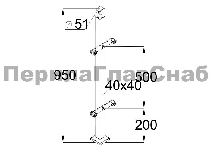 Стойка квадратная 40х40: 4 литых стеклодержателя, полированная, высота 950 мм (AISI 304) k746 купить в Самаре