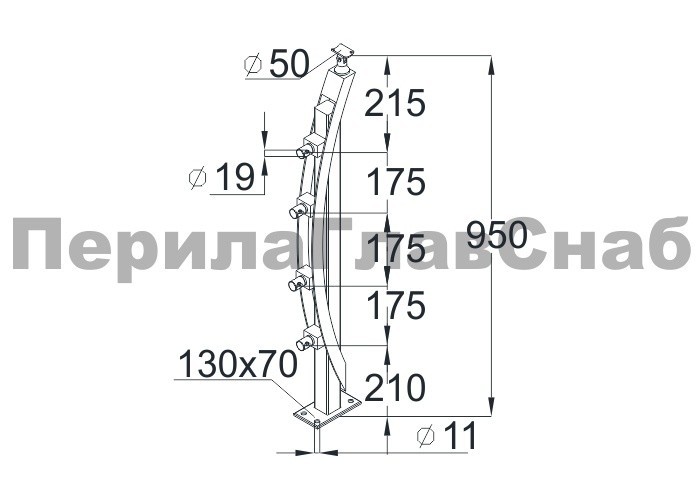 Готовая стойка Ø38,1х950 мм деревянная, со вставками из нержавеющей стали 2х100 мм с 4 стеклодержателями k741-3 купить в Самаре