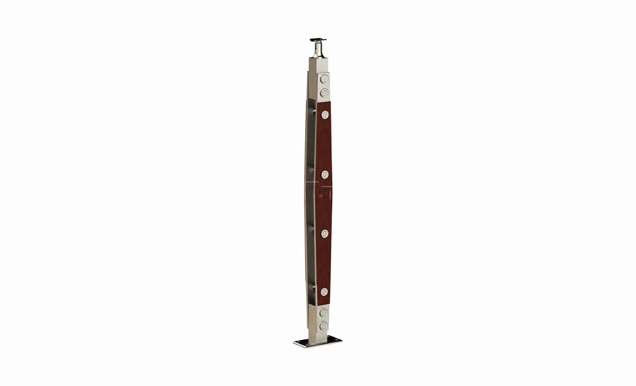 Готовая стойка Ø38,1х950 мм деревянная, со вставками из нержавеющей стали 2х100 мм с 2 стеклодержателями k741-2-R купить в Самаре