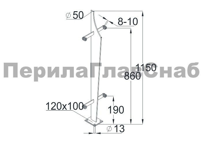 Готовая стойка Ø38,1х950 мм деревянная, со вставками из нержавеющей стали 2х100 мм с 2 стеклодержателями k741-2-L купить в Самаре