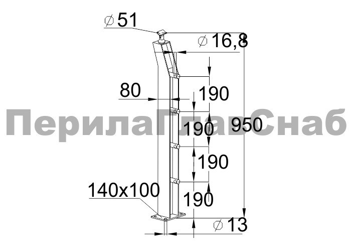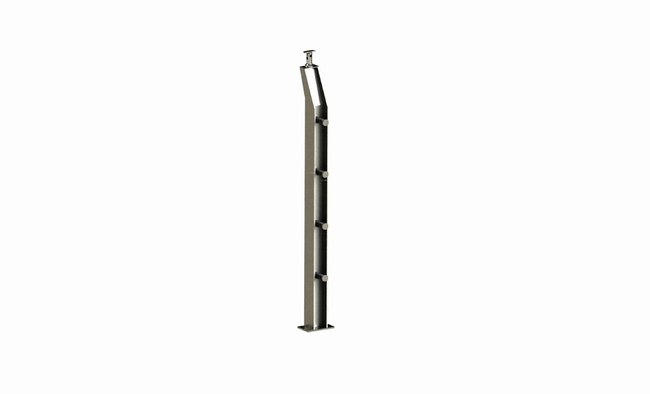 Стойка квадратная 40х40: 4 литых стеклодержателя, полированная, высота 950 мм (AISI 304) k746 купить в Самаре
