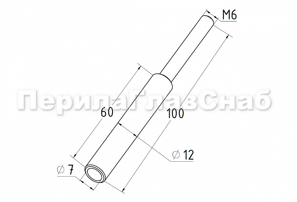 Держатель тросика Ø6 мм, обжимной с резьбой длиной 40 мм, М6 наружной, шлифованный (AISI 304)