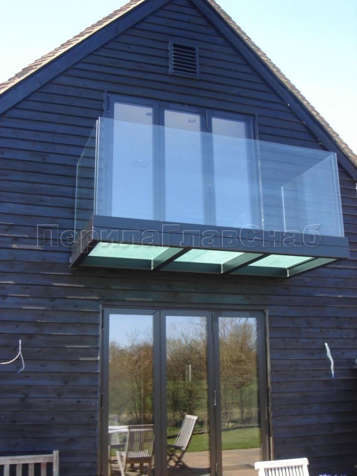 Данный тип ограждений в своей конструкции стоек не содержит. Несущие функции выполняет толстое каленое стекло. Само же несущее стекло крепится к балконной плите на алюминиевый профиль, который способен выдержать очень большие нагрузки, поэтому очень надежный.