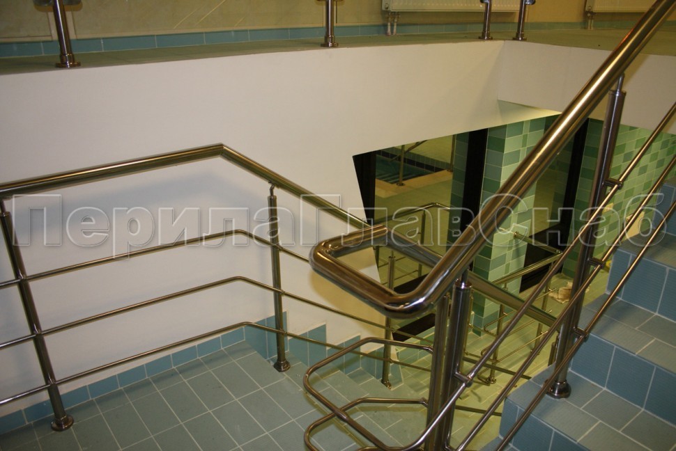 Записаться на встречу Три ригеля на держателях, круглый поручень и круглые стойки для крыльца