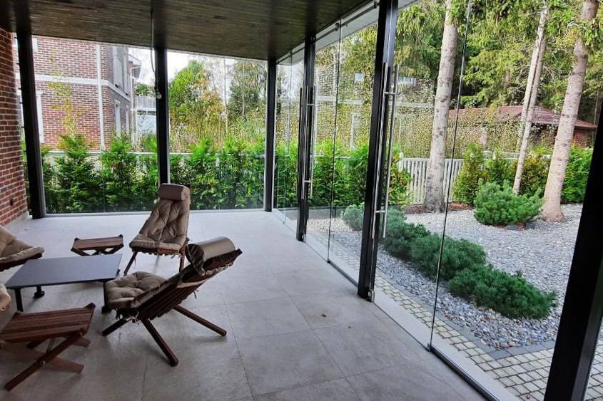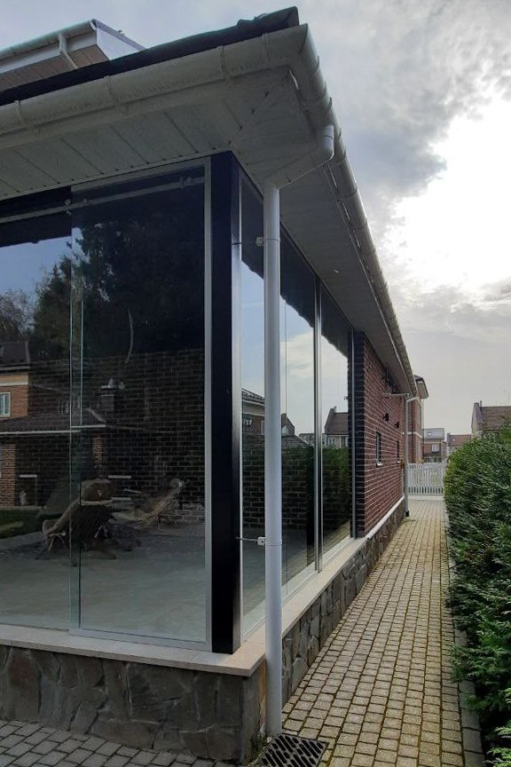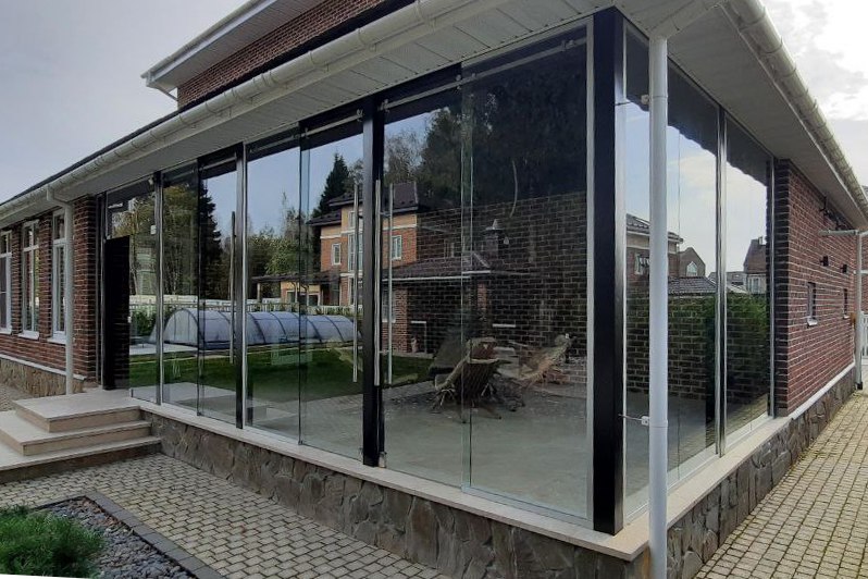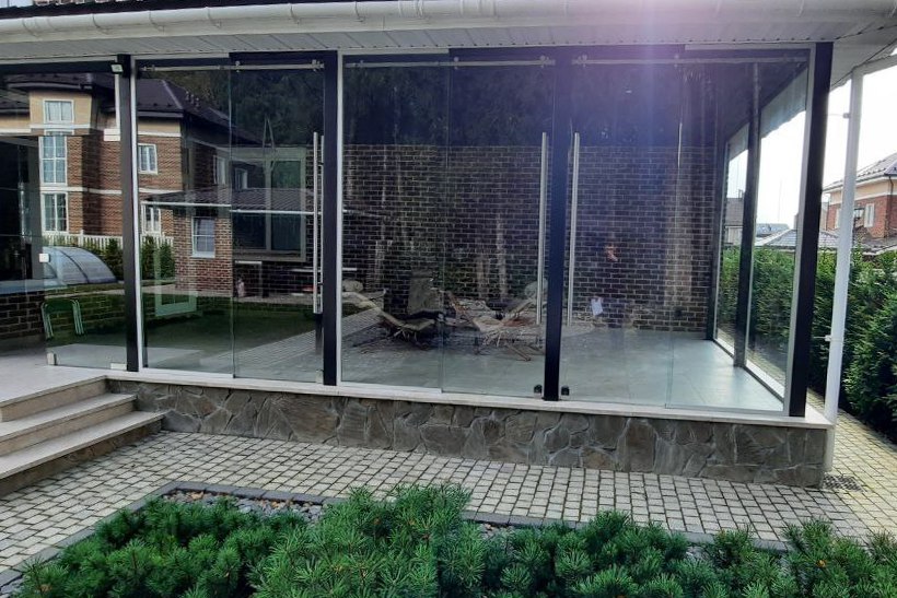 Частный загородный дом (установка цельностеклянной конструкции)