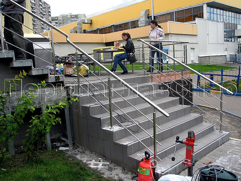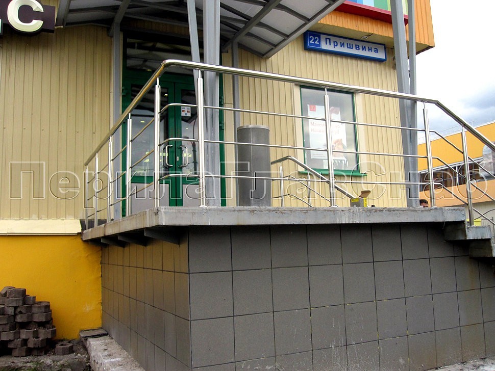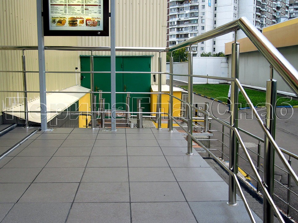 Само по себе ограждение было довольно типичным для объектов подобного рода: поручень и стойки из нержавеющей стали специальной уличной марки и три ригеля из того же материала в качестве заполнения между стойками параллельно поручню.