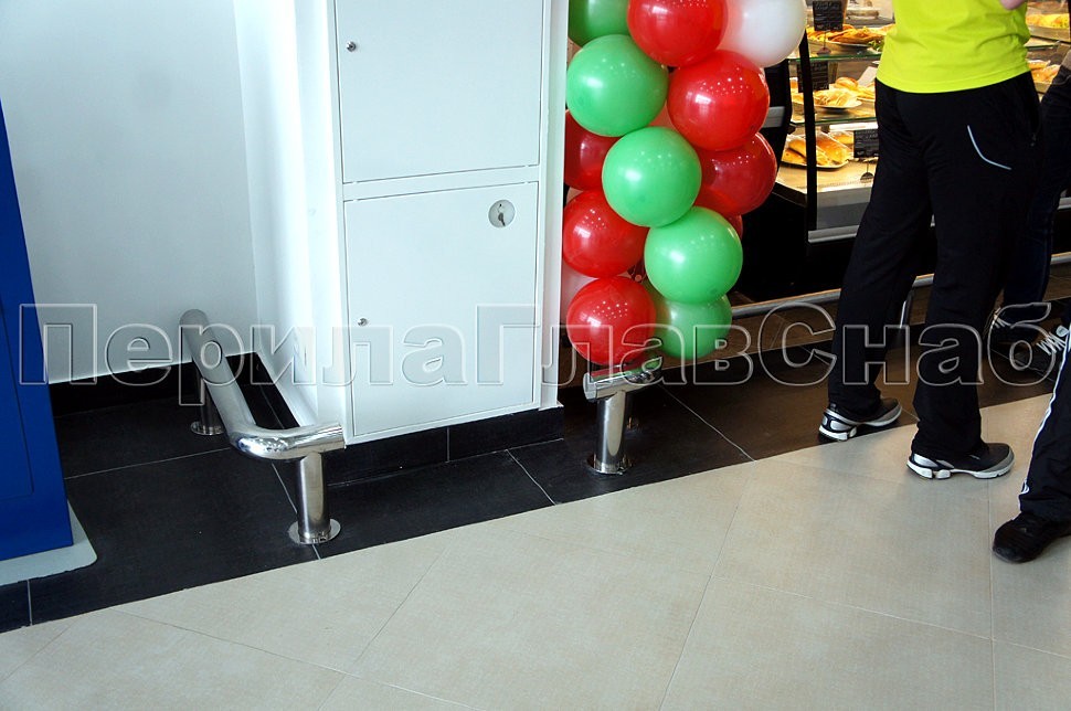 В гипермаркете «Ашан» г. Рязань требовалось разработать и установить комплекс конструкций для обеспечения защиты внутренних колонн и сооружений от постоянных столкновений с товарными тележками посетителей магазина. Для решения данной проблемы заказчика мы применили ряд технологических усовершенствований в архитектурной части проекта и разработали несколько видов колесоотбойников из нержавеющей стали и защитных ограждений колонн, как вдоль стен, так и по всему гипермаркету.
