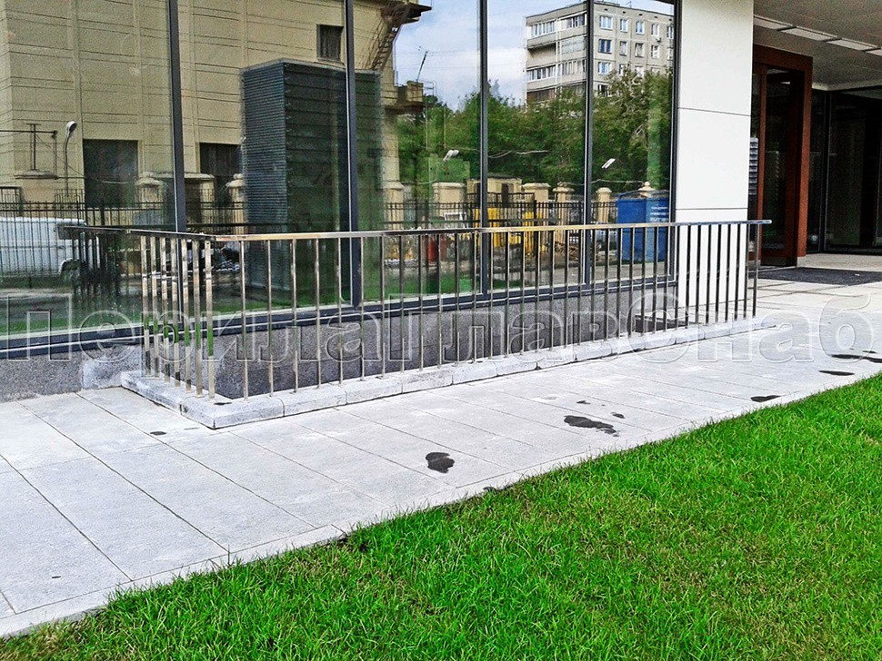 Также для бизнес-центра компания «ПерилаГлавСнаб» установила ограждения и поручни для лестниц, ведущих в подвальные помещения. Дизайн этих ограждений также отлично вписался в общий архитектурный ландшафт.