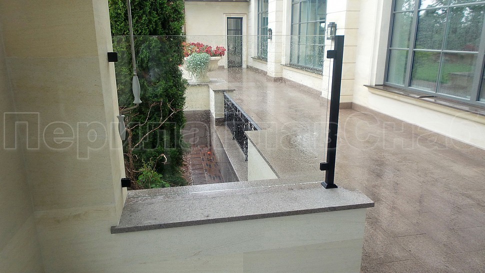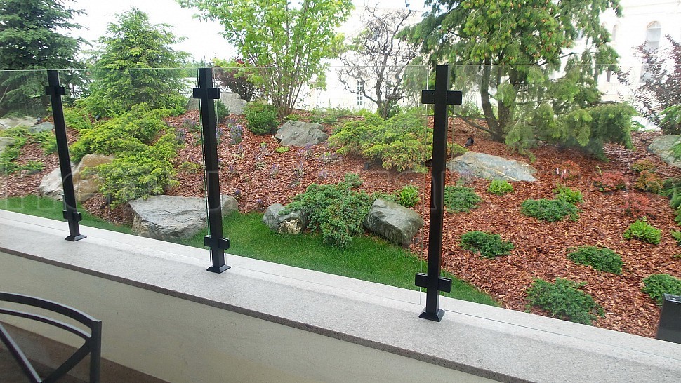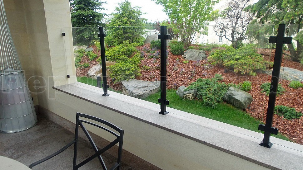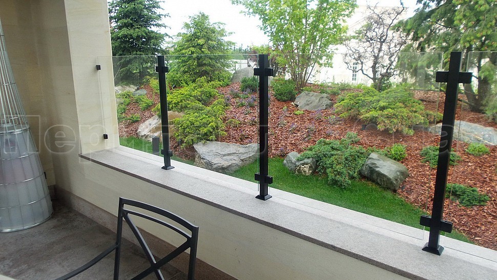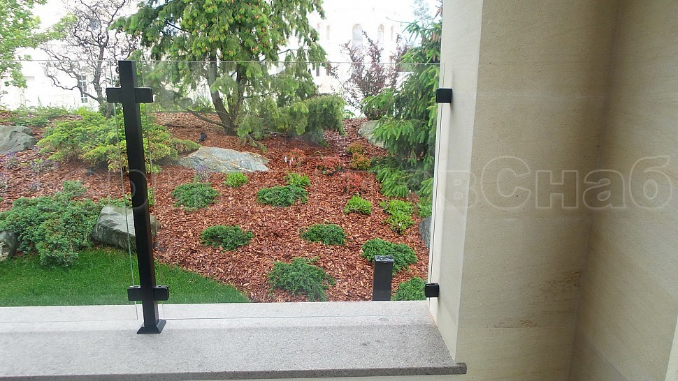 Нашими проектировщиками был проведен замер и предложен вариант конструкции, который очень подошел клиенту: восемь погонных метров ограждений со шлифованными стойками, окрашенными в черный цвет порошковым методом. Между стойками на зажимных стеклодержателях крепятся стекла толщиной 8мм, преданные закалке для большей прочности и безопасности конструкции. Так как данная модель стеклодержателей отличается универсальностью, по краям конструкции стекла крепятся на них же к стене - это придает большей гармоничности всего ограждения и экономит больше места.