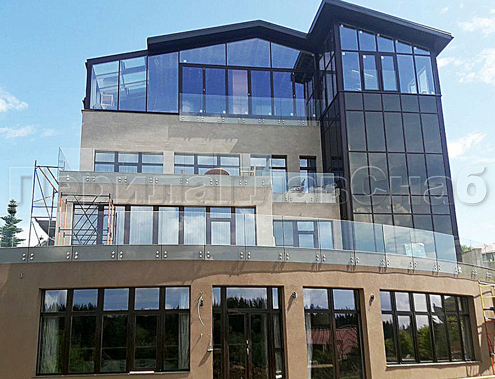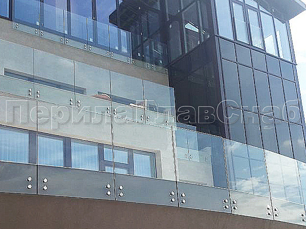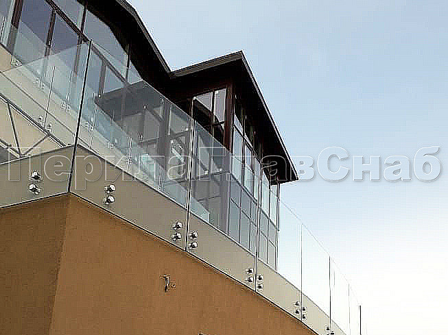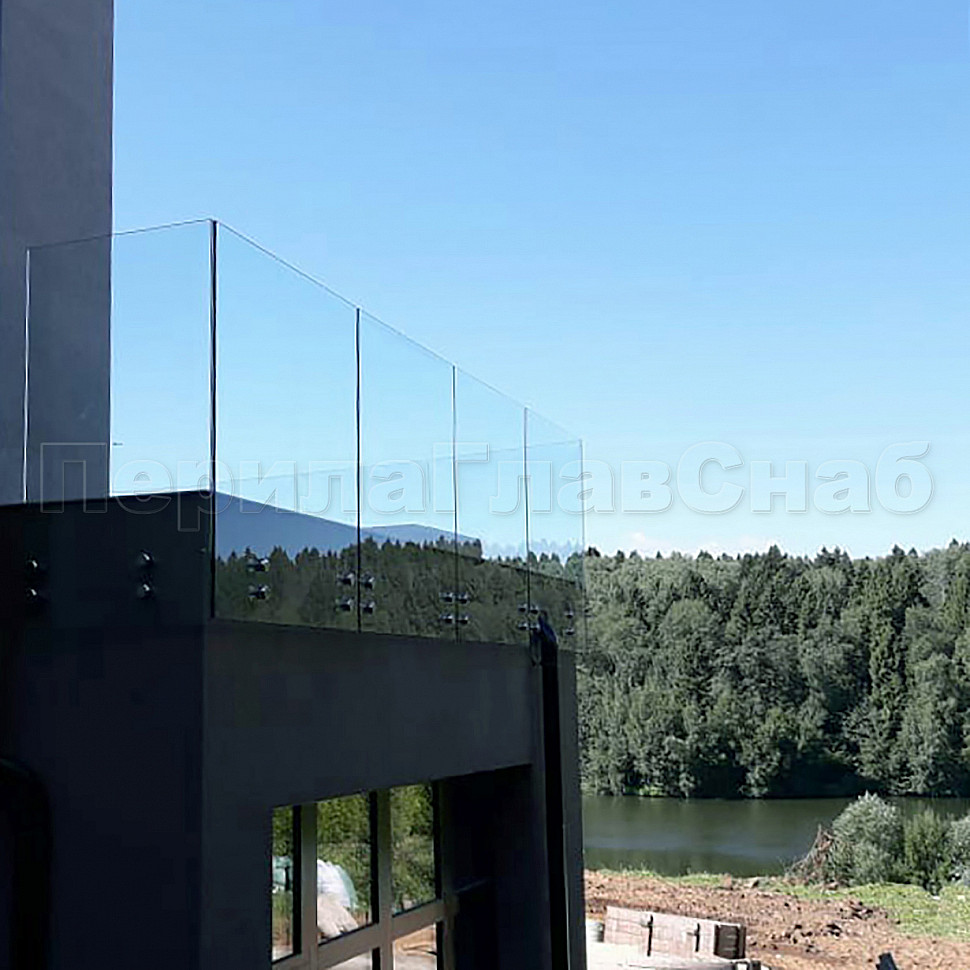 Конструктив : закаленное прозрачное стекло, толщиной 10 мм на точечном креплении.